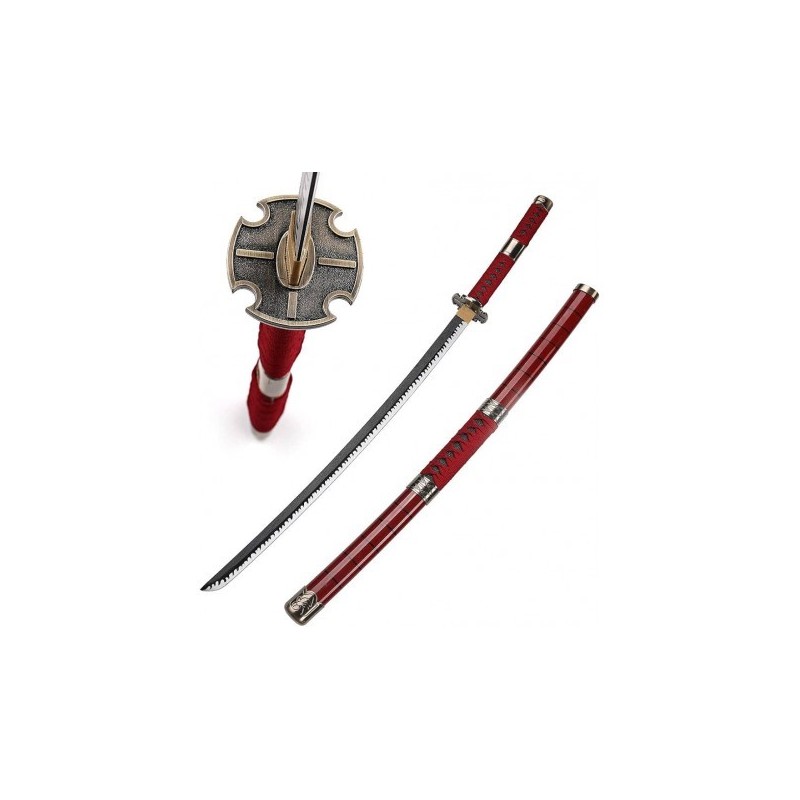 Katana fantasy liberamente ispirata a One Piece. Lama in acciaio al carbonio ad anima intera con fodero in legno